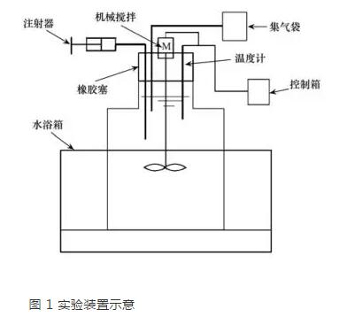 本實驗使用的裝置為有效容積為1.0 L的玻璃瓶,外置黑布,瓶口橡膠塞上開兩孔,分別用于攪拌和取樣(圖 1).為保證系統的密封性,取樣采用注射器進行抽取.反應器配置攪拌裝置維持轉速為80 r˙min-1.反應裝置放在恒溫水浴鍋中,溫度設為35℃.本實驗的水力停留時間為8 h,每隔0.5 h取一次樣進行水質分析,進水pH控制在7.5左右.