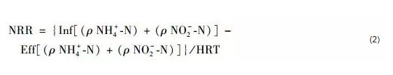容積基質氮去除率[volume substrate nitrogen removal rate,NRR,kg˙(m3˙d)-1]采用式(2)進行計算: