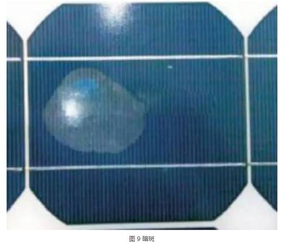 外界因素導致的熱斑效應主要是指太陽電池組件在陽光照射下,由于部分組件受到烏云或者樹葉等的遮擋無法工作,使得被遮蓋的部分組件升溫遠遠大于未被遮蓋部分,致使溫度過高出現燒壞的暗斑。